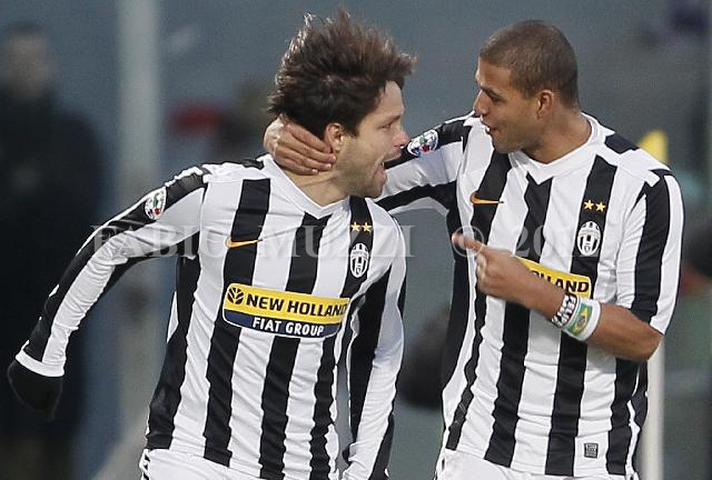 | ITALY, Florence : Juventus' Ribas Diego (L) celebrates together teammate Carvhalo Felipe Melo after scored against Fiorentina during their seria A soccer match at Artemio Franchi stadium in Florence, on March 06, 2010. (AFP PHOTO / FABIO MUZZI) | IMAGE_3811.JPG | 06/03/10 18.08 | |