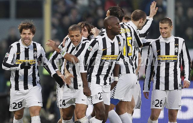| ITALY, Florence : Juventus' plauers celebrate teammate Ribas Diega (L) after his score against Fiorentina during their seria A soccer match at Artemio Franchi stadium in Florence, on March 06, 2010. (AFP PHOTO / FABIO MUZZI) | IMAGE_3812.JPG | 06/03/10 18.08 | |