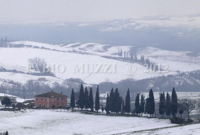 | ITALY - Pienza : a view of tuscany landscapes with a farm fully covered surrounding by snow near Pienza tuscany medieval village in Orcia valley, central Italy, on March 11, 2010. Tuscany and central Italy has been shocked by an extraordinary adverse meterological weather included of one or more meter height of snow. AFP PHOTO / FABIO MUZZI | IMAGE_3828.JPG | 11/03/10 8.39 | |
