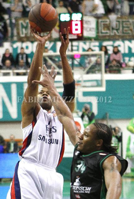 | ITALY, Siena : Efes Pilsen's Istambul Charles Smith in action against Montepaschi's Siena David Hawkins during their Top 16 Game 6, Groupe F, Euroleague basketball match in Siena, on March 11, 2010. (AFP PHOTO / FABIO MUZZI) | IMAGE_3833.JPG | 11/03/10 20.58 | |