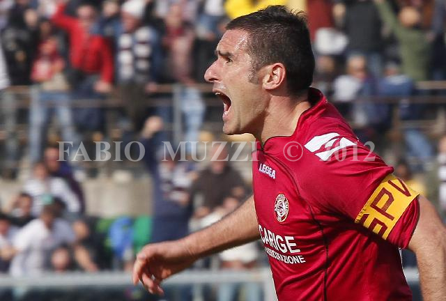 | ITALY, Leghorn : Livorno's Cristiano Lucarelli celebrates after scoring against Roma during their seria A soccer match at Armando Picchi stadium in Leghorn, on March 13, 2010. (AFP PHOTO / FABIO MUZZI) | IMAGE_3837.JPG | 14/03/10 15.13 | |