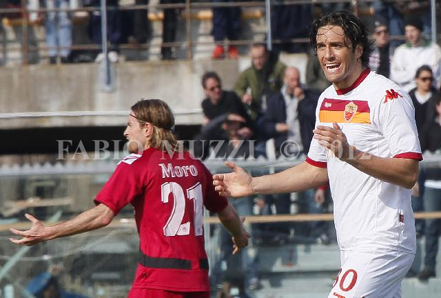 | ITALY, Leghorn : AS Roma's Luca Toni (R) celebrates after scoring against Livorno during their seria A soccer match at Armando Picchi stadium in Leghorn, on March 13, 2010. (AFP PHOTO / FABIO MUZZI) | IMAGE_3839.JPG | 14/03/10 15.15 | |