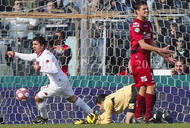 | ITALY, Leghorn : AS Roma's David Pizarro of Chili (L) celebrates after scoring 3-2 against Livorno's goalkeeper Rubhens Rubinho of Brazil during their seria A soccer match at Armando Picchi stadium in Leghorn, on March 13, 2010. (AFP PHOTO / FABIO MUZZI) | IMAGE_3845.JPG | 14/03/10 15.32 | |