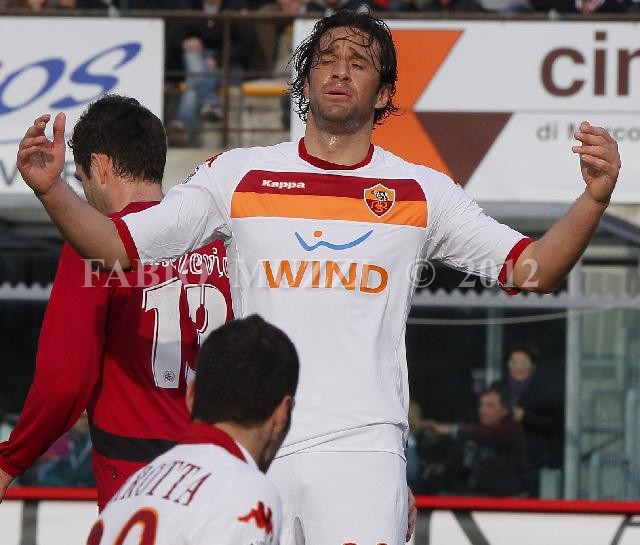 | ITALY, Leghorn : AS Roma's Luca Toni reacts after failed a chance to score during their seria A soccer match at Armando Picchi stadium in Leghorn, on March 13, 2010. (AFP PHOTO / FABIO MUZZI) | IMAGE_3851.JPG | 14/03/10 16.40 | |