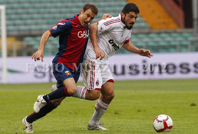 | ITALY, Genova : AC Milan's Gennaro Gattuso (R) vies with Genoa's Rodrigo Palacio of Argentina during their serie A football match at Luigi Ferraris stadium in Genova on May 9, 2010. AFP PHOTO / FABIO MUZZI | IMAGE_3872.JPG | 09/05/10 14.26 | |