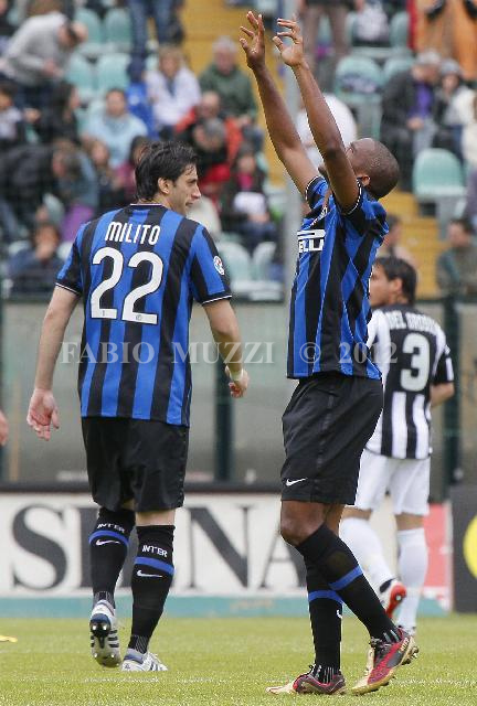 | ITALY, Siena : From (R) FC Inter's Eto' prayers prior their seria A soccer match at Artemio Franchi stadium in Siena, on May 16, 2010. (AFP PHOTO / FABIO MUZZI) | IMAGE_3885.JPG | 16/05/10 14.02 | |