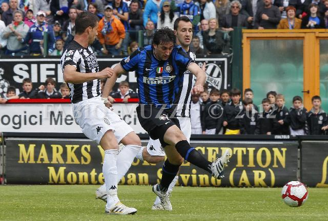 | ITALY, Siena : FC Inter's Diego Milito (C) kicks to score 1-0 against Siena during their seria A soccer match at Artemio Franchi stadium in Siena, on May 16, 2010. (AFP PHOTO / FABIO MUZZI) | IMAGE_3898.JPG | 16/05/10 15.19 | |