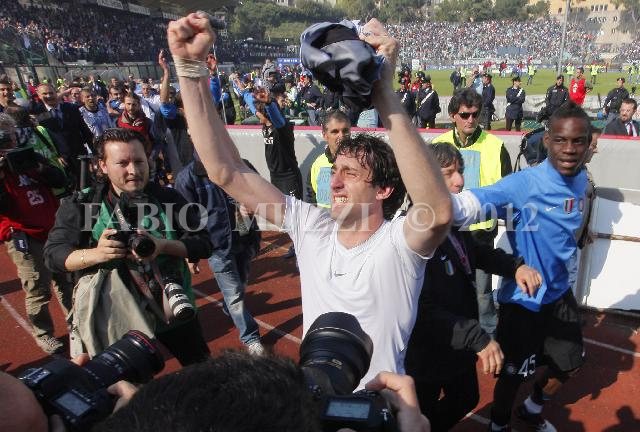 | ITALY, Siena : FC Inter's players and Milito celebrates the victory of the 18 italian football championship during their seria A soccer match at Artemio Franchi stadium in Siena, on May 16, 2010. (AFP PHOTO / FABIO MUZZI) | IMAGE_3910.JPG | 16/05/10 15.56 | |