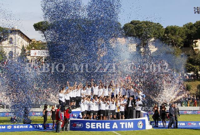 | ITALY, Siena : FC Inter's players celebrates the victory of the 18 italian football championship during their seria A soccer match at Artemio Franchi stadium in Siena, on May 16, 2010. (AFP PHOTO / FABIO MUZZI) | IMAGE_3923.JPG | 16/05/10 16.22 | |