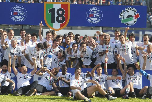 | ITALY, Siena : FC Inter's players celebrates the victory of the 18 italian football championship during their seria A soccer match at Artemio Franchi stadium in Siena, on May 16, 2010. (AFP PHOTO / FABIO MUZZI) | IMAGE_3933.JPG | 16/05/10 16.24 | |