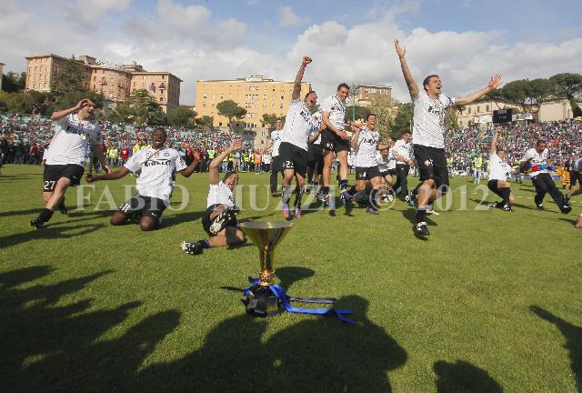 | ITALY, Siena : FC Inter's players celebrate the victory of the 18 italian football championship during their seria A soccer match at Artemio Franchi stadium in Siena, on May 16, 2010. (AFP PHOTO / FABIO MUZZI) | IMAGE_3948.JPG | 16/05/10 16.22 | |