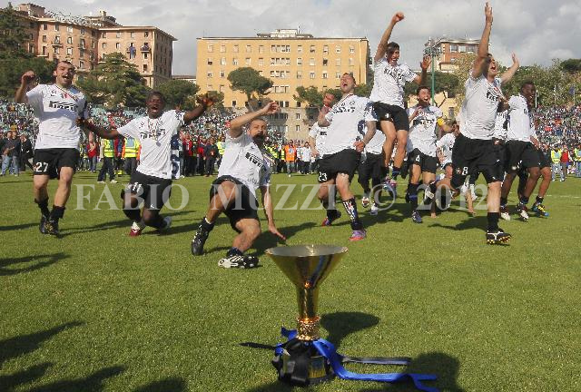 | ITALY, Siena : FC Inter's players celebrate the victory of the 18 italian football championship during their seria A soccer match at Artemio Franchi stadium in Siena, on May 16, 2010. (AFP PHOTO / FABIO MUZZI) | IMAGE_3949.JPG | 16/05/10 16.22 | |
