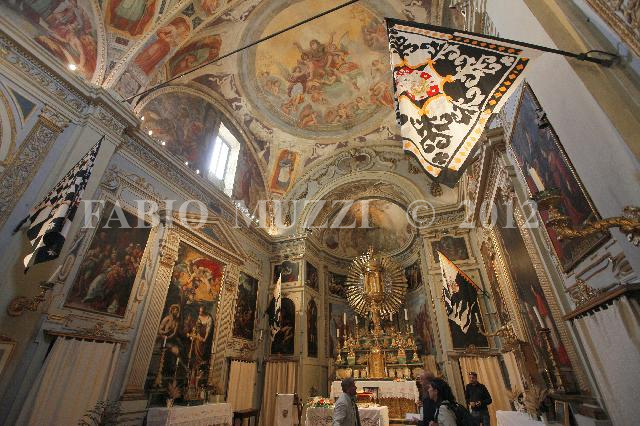 | ITALY, Siena : the curch of the Contrada of Wolf ( Contrada is a medieval district of Siena city ), on June 21, 2010. The Palio of Siena (known locally simply as Il Palio) is a horse race held twice each year on July 2 and August 16 in Siena, Italy, in which ten horses and riders, dressed in the appropriate colours, represent ten of the seventeen Contrade (the medieval Siena district), or city wards. (AFP PHOTO / FABIO MUZZI) | IMAGE_3971.JPG | 21/06/10 17.49 | |