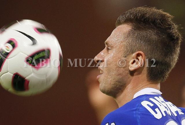 | ITALY, Genova : Sampdoria's Antonio Cassano look at the ball during their serie A football match at Luigi Ferraris stadium in Genova on August 29, 2010. AFP PHOTO / FABIO MUZZI | IMAGE_4054.JPG | 29/08/10 20.21 | |