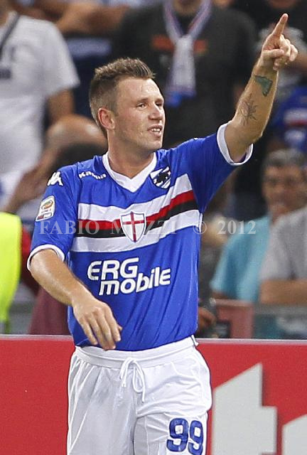 | ITALY, Genova : Sampdoria's Antonio Cassano celebrates after scoring against Lazio during their serie A football match at Luigi Ferraris stadium in Genova on August 29, 2010. AFP PHOTO / FABIO MUZZI | IMAGE_4059.JPG | 29/08/10 21.03 | |