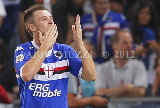 | ITALY, Genova : Sampdoria's Antonio Cassano celebrates after scoring against Lazio during their serie A football match at Luigi Ferraris stadium in Genova on August 29, 2010. AFP PHOTO / FABIO MUZZI | IMAGE_4060.JPG | 29/08/10 21.03 | |