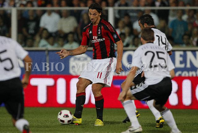 | ITALY, Cesena : AC Milan's Zlatan Ibrahimovic (L) action during their serie A football match at Dino Manuzzi stadium in Cesena on September 11, 2010. AFP PHOTO / FABIO MUZZI | IMAGE_4086.JPG | 11/09/10 20.08 | |