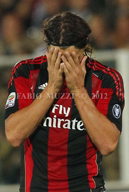 | ITALY, Cesena : AC Milan's Zlata Ibrahimovic of sweden reacts during their serie A football match at Dino Manuzzi stadium in Cesena on September 11, 2010. AFP PHOTO / FABIO MUZZI | IMAGE_4096.JPG | 11/09/10 20.26 | |
