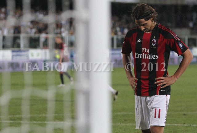 | ITALY, Cesena : AC Milan's Zlatan Ibrahimovic os Sweden reacts after failed to score a penalty against Cesena during their serie A football match at Dino Manuzzi stadium in Cesena on September 11, 2010. AFP PHOTO / FABIO MUZZI | IMAGE_4102.JPG | 11/09/10 21.30 | |