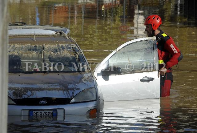 | ITALY, Prato : italian fireman rescue works on a car buried in a subway of the main street of Prato town, fully flooded after that a thunderstorm of this nigh-morning has interested the tuscany and liguria region causing deads in Prato, on October 05, 2010 (AFP PHOTO / FABIO MUZZI) | IMAGE_4119.JPG | 05/10/10 10.37 | |