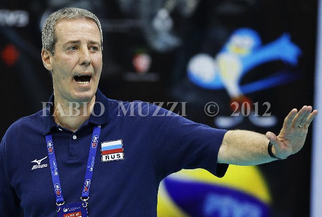 | ITALY, Florence : Russia's coach Daniele Bagnoli speaks to his players during their Volleyball World Championships third round match at Nelson Mandela Forum in Florence on October 05, 2010. AFP PHOTO / FABIO MUZZI | IMAGE_4131.JPG | 05/10/10 16.52 | |