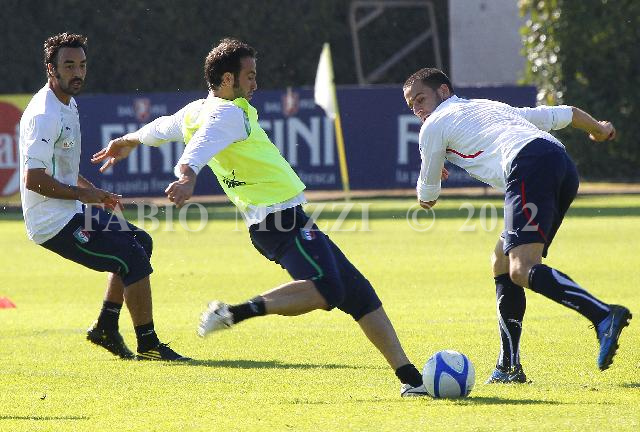 | ITALY, Florence : from (L to R) Italy's national players Mattia Cassani, Giampaolo Pazzini and Lenoardo Bonucci during a training session at the Italian Football Federation technical center of Coverciano in Florence, on October 07 2010. Italy will face Ireland in Belfast next October 08 for their Euro 2012 European Championship Qualifying group stage match. (AFP PHOTO/ FABIO MUZZI) | IMAGE_4178.JPG | 07/10/10 9.57 | |