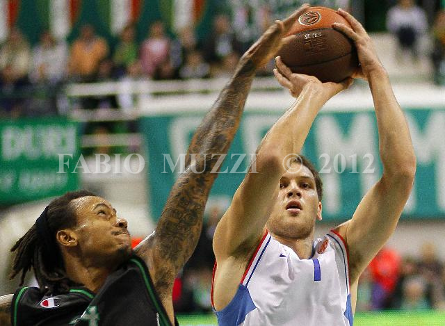 | ITALY, Siena : Montepaschi's Siena David Moss (L) tries to stop the action of Cibona's Zagreb Bojan Bogdanovic during their regular season, Game 3, Groupe C, Euroleague basketball match in Siena, on November 3, 2010. (AFP PHOTO / FABIO MUZZI) | IMAGE_4209.JPG | 03/11/10 21.10 | |