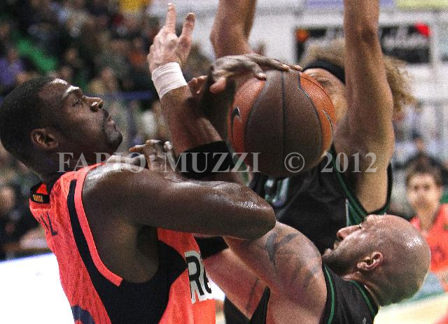 | ITALY, Siena : from (L) Regal's Barcelona Pete Mickeal, Montepaschi's Siena Shaun Stonerook and teammate Milovan Rakovic fight for the ball during their regular season, Game 5, Groupe C, Euroleague basketball match in Siena, on November 17, 2010. (AFP PHOTO / FABIO MUZZI) | IMAGE_4217.JPG | 17/11/10 21.01 | |
