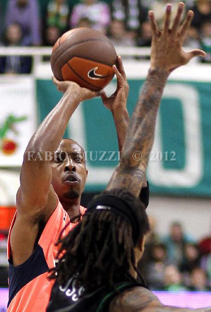 | ITALY, Siena : Regal's Barcelona Pete Micheal (L) jumps and shoots against Montepaschi's Siena David Moss during their regular season, Game 5, Groupe C, Euroleague basketball match in Siena, on November 17, 2010. (AFP PHOTO / FABIO MUZZI) | IMAGE_4221.JPG | 17/11/10 20.53 | |