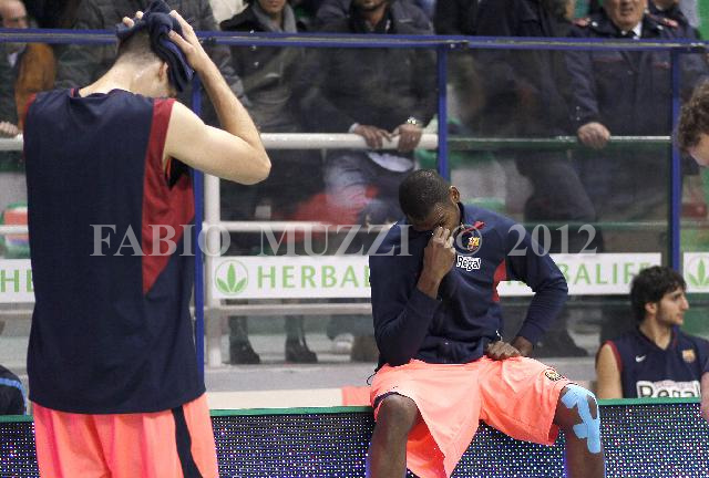 | ITALY, Siena : Regal's Barcelona players react at the end of the match missed 76 - 67 against Montepaschi's Siena in their regular season, Game 5, Groupe C, Euroleague basketball match in Siena, on November 17, 2010. (AFP PHOTO / FABIO MUZZI) | IMAGE_4224.JPG | 17/11/10 20.42 | |