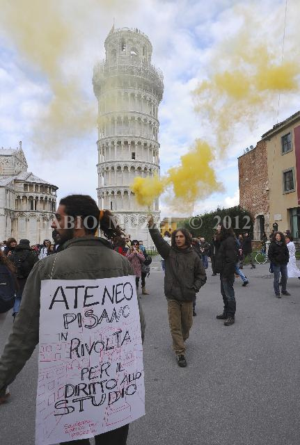 | ITALY, Pisa : Students of Pisa's University protest in the Square of Miracle and on the leaning tower to protest against the proposition reform presented by the italian minister Gelmini, on November 25, 2010 (AFP PHOTO / FABIO MUZZI) | IMAGE_4246.JPG | 25/11/10 13.54 | |