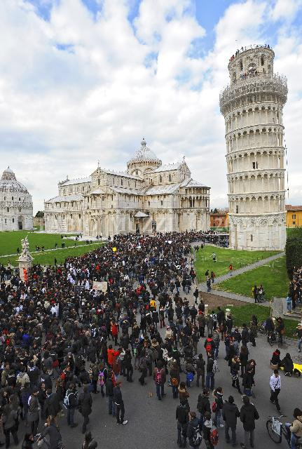 | ITALY, Pisa : Students of Pisa's University protest in the Square of Miracle and on the leaning tower to protest against the proposition reform presented by the italian minister Gelmini, on November 25, 2010 (AFP PHOTO / FABIO MUZZI) | IMAGE_4249.JPG | 25/11/10 14.05 | |