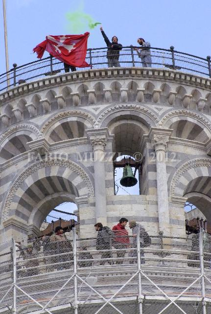 | ITALY, Pisa : Students of Pisa's University protest in the Square of Miracle and on the leaning tower to protest against the proposition reform presented by the italian minister Gelmini, on November 25, 2010 (AFP PHOTO / FABIO MUZZI) | IMAGE_4251.JPG | 25/11/10 14.02 | |