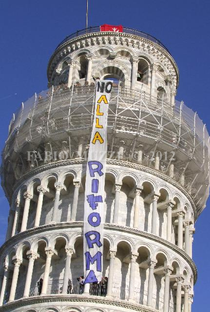 | ITALY, Pisa : Students of Pisa's University protest in the Square of Miracle and on the leaning tower to protest against the proposition reform presented by the italian minister Gelmini, on November 25, 2010 (AFP PHOTO / FABIO MUZZI) | IMAGE_4252.JPG | 25/11/10 14.36 | |