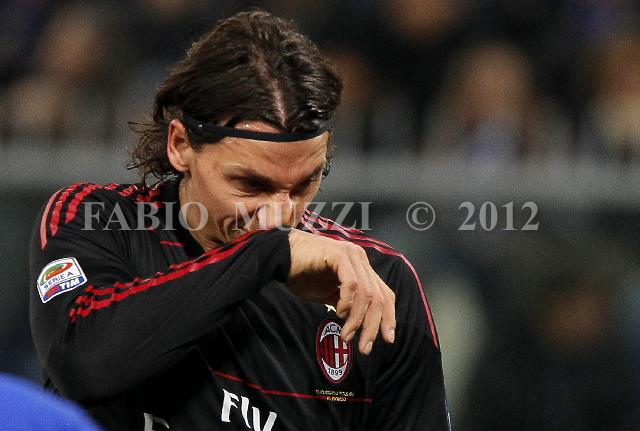 | ITALY, Genova : AC Milan' Zlatan ùibrahimovic of Sweden reacts during their serie A football match at Luigi Ferraris stadium in Genova on November 27, 2010. AFP PHOTO / FABIO MUZZI | IMAGE_4256.JPG | 27/11/10 18.21 | |