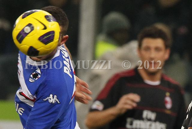| ITALY, Genova : AC Milan's Angelo Palombo (L) controls the balls during their serie A football match at Luigi Ferraris stadium in Genova on November 27, 2010. AFP PHOTO / FABIO MUZZI | IMAGE_4260.JPG | 27/11/10 18.29 | |