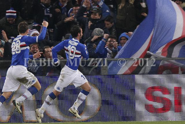 | ITALY, Genova : from right, Sapdoria's Giampaolo Pazzini celebrates together his teammates after scoring against AC Milan during their serie A football match at Luigi Ferraris stadium in Genova on November 27, 2010. AFP PHOTO / FABIO MUZZI | IMAGE_4267.JPG | 27/11/10 19.19 | |