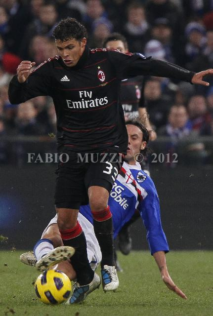 | ITALY, Genova : AC Milan's Emiliano Thiago Silva of Brazil, forward, is tackled by Sampdoria's Daniele Mannini during their serie A football match at Luigi Ferraris stadium in Genova on November 27, 2010. AFP PHOTO / FABIO MUZZI | IMAGE_4269.JPG | 27/11/10 19.33 | |