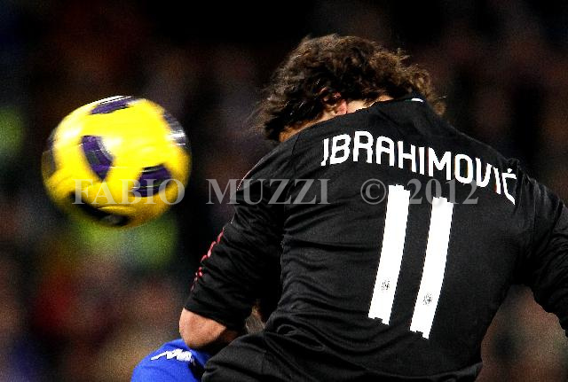 | ITALY, Genova : AC Milan's Zlata Ibrahimovic of Sweden heads the ball during their serie A football match at Luigi Ferraris stadium in Genova on November 27, 2010. AFP PHOTO / FABIO MUZZI | IMAGE_4271.JPG | 27/11/10 19.46 | |