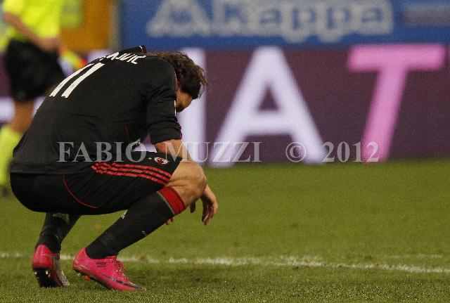 | ITALY, Genova : AC Milan's Zltana Ibrahimovic of Sweden reacts at the end of the match equalizer 1-1 against Sampdoria in their serie A football match at Luigi Ferraris stadium in Genova on November 27, 2010. AFP PHOTO / FABIO MUZZI | IMAGE_4274.JPG | 27/11/10 19.54 | |