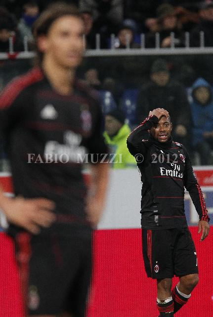| ITALY, Genova : fron right to left, A Mian's Robson Robinho of Brazil and Zlatan Ibrahimovic of Sweden reacts at the end of the match equalizer 1-1 agaist Sampdoria in their serie A football match at Luigi Ferraris stadium in Genova on November 27, 2010. AFP PHOTO / FABIO MUZZI | IMAGE_4275.JPG | 27/11/10 19.53 | |