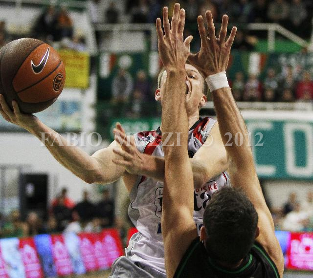 | ITALY, Siena : Lyetuvos Rytas' Brad Newley ( with the ball ) in action against Montepaschi's Siena Tomas Ress during their reagular season, Groupe C, Euroleague basketball match in Siena, on December 01, 2010. (AFP PHOTO / FABIO MUZZI) | IMAGE_4277.JPG | 01/12/10 21.19 | |