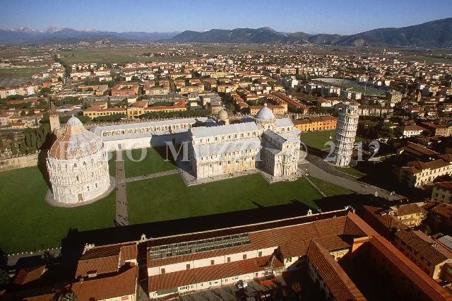 | ITALY, Pisa : an aereal view of the "Miracoli" square with the architectonic buildings of the baptisphere (L) cathedral (C) and the leaning tower of Pisa town, on December 02, 2010 (AFP PHOTO / FABIO MUZZI) | IMAGE_4294.JPG | | |