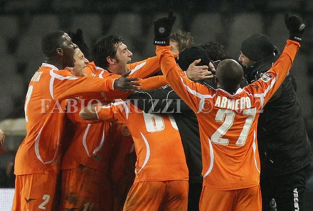 | ITALY, Turin : Udinese's players celebrate after scored against Juventus during their serie A football match at Olymimpic stadium in Turin on January 30, 2011. AFP PHOTO / FABIO MUZZI | IMAGE_4344.JPG | 30/01/11 22.29 | |