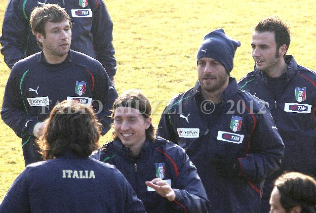 | ITALY, Florence : from L, Italy's national football players Antonio Cassano, Riccardo Montolivo, daniele De Rossi and Giampaolo Pazzini during a training session at the Italian Football Federation technical center of Coverciano in Florence, on January 07 2011. Italy will face Germany in Dortmund next January 09 for a friendly match. (AFP PHOTO/ FABIO MUZZI) | IMAGE_4354.JPG | 07/02/11 15.39 | |