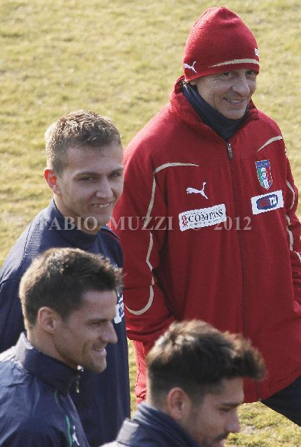 | ITALY, Florence : from up to down, Italy's national football coach team Cesare Prandelli, looks his players Domenico Criscito, Cristian Maggio and Marco Borriello during a training session at the Italian Football Federation technical center of Coverciano in Florence, on January 07 2011. Italy will face Germany in Dortmund next January 09 for a friendly match. (AFP PHOTO/ FABIO MUZZI) | IMAGE_4355.JPG | 07/02/11 15.36 | |