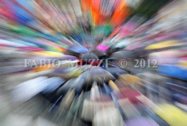 | ITALY, Viareggio : A view of people with colored umbrella parades during the annual carnival of Viareggio on February 20, 2011. AFP PHOTO / Fabio Muzzi | IMAGE_4375.JPG | 20/02/11 15.13 | |