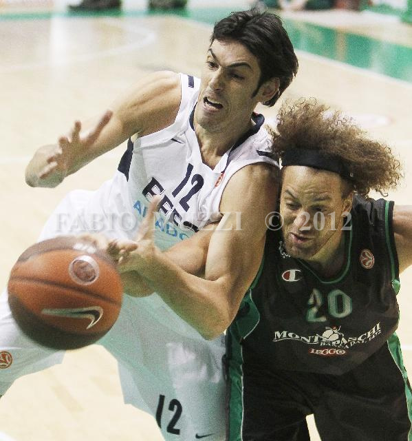 | ITALY, Siena : Montepaschi's Siena Shaun Stonerook (R) and Efes' Pilsen Kerem Gonlum fight for the ball during their Euroleague basketball top 16 match, Groupe G, on February 14, 2011 in Siena. (AFP PHOTO/ FABIO MUZZI) | IMAGE_4377.JPG | 24/02/11 20.52 | |