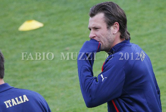 | ITALY, Florence : Italian's national football player Antonio Casano reacts during a training session at the Italian Football Federation technical center of Coverciano in Florence, on March 21 2011. Italy will face Slovenia in Ljubliana, next Friday 25, for the European' qualification match. (AFP PHOTO/ FABIO MUZZI) | IMAGE_4383.JPG | 21/03/11 16.01 | |