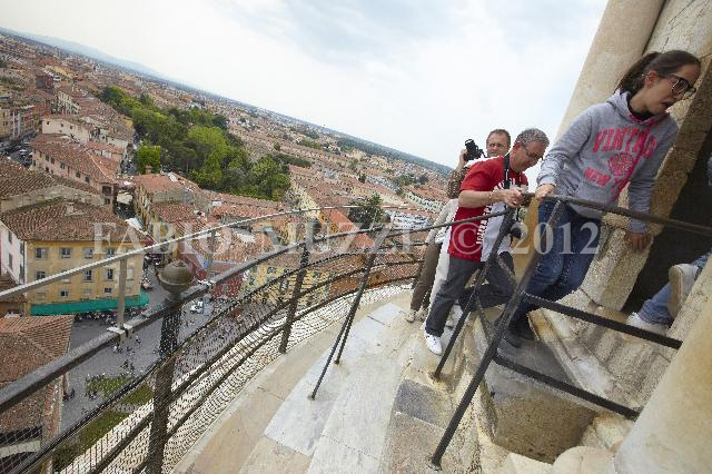 | ITALY, Pisa : Tourist walk at the top of the leaning tower of Pisa now completely free of any building site after 20 years of the stabilization and restoration works in Pisa on April 26, 2011 (AFP PHOTO / FABIO MUZZI) | IMAGE_4401.JPG | 26/04/11 11.33 | |